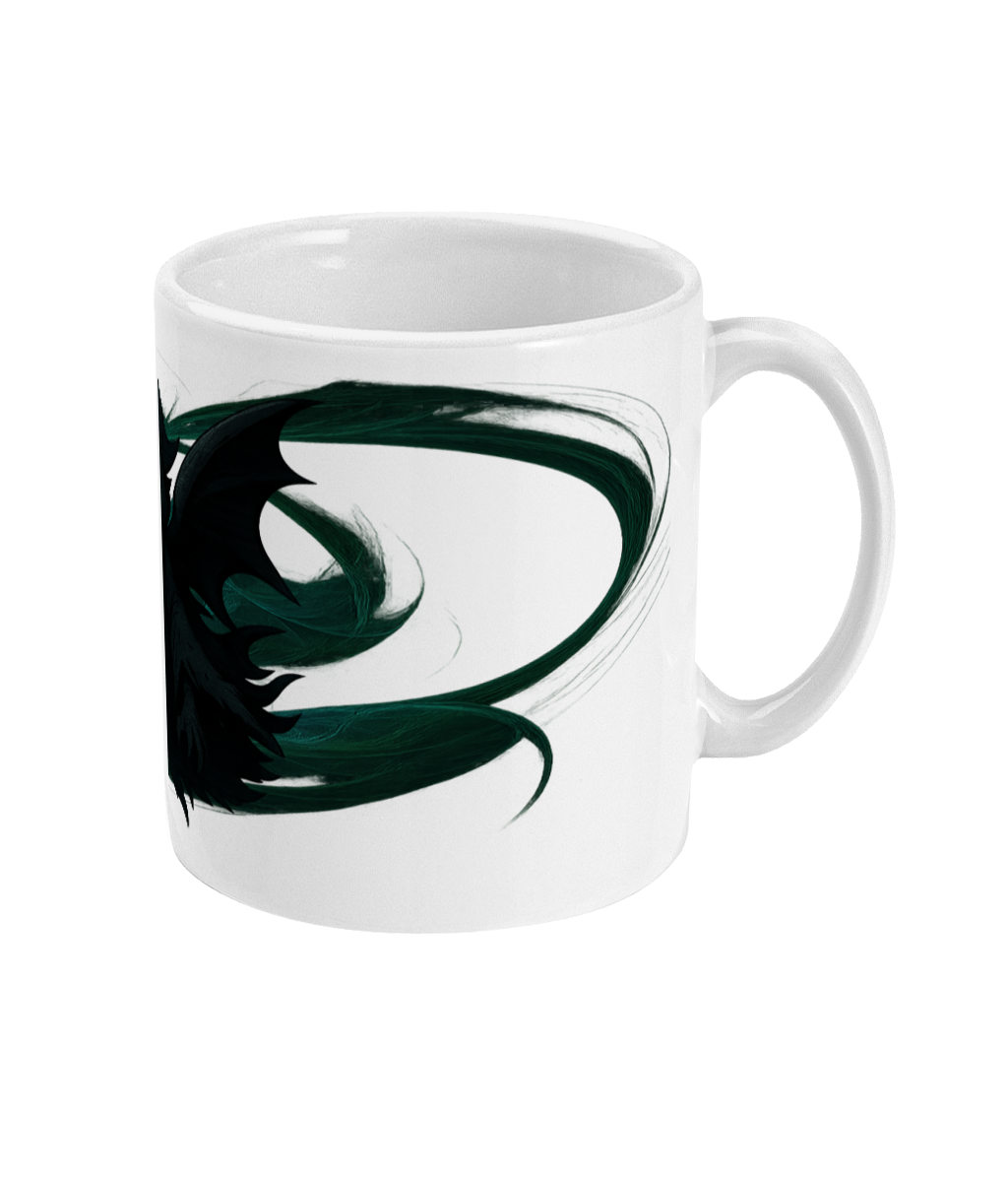 This 11oz ceramic mug features a chilling dark fantasy illustration: a hooded skeletal figure with bat-like wings, cloaked in swirling green and black energy. Perfect for fans of gothic lore, eldritch aesthetics, or anyone who prefers their morning brew with a side of mystery.